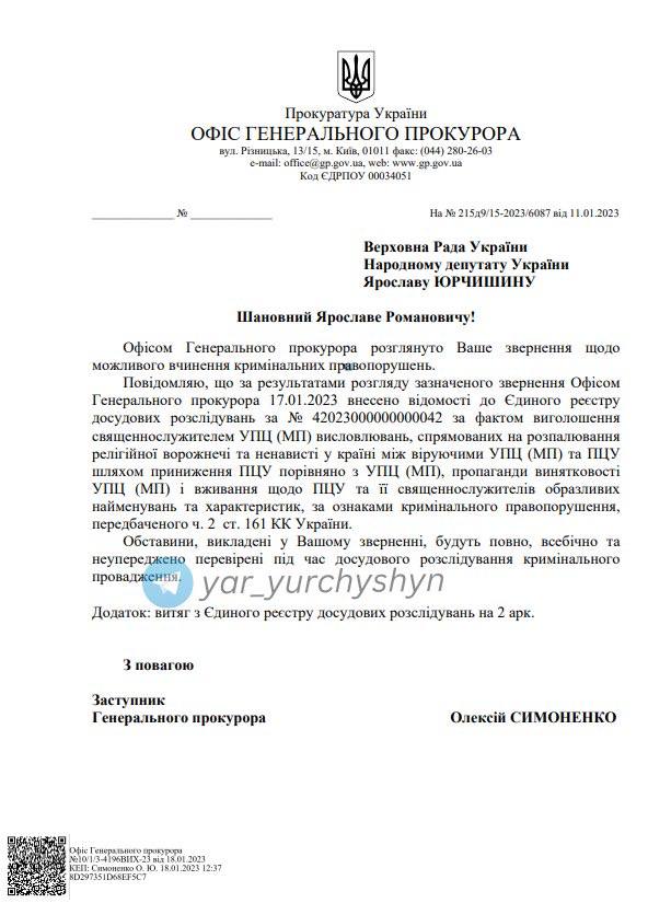 При этом в его сообщении упоминания об Украинской православной церкви нет.