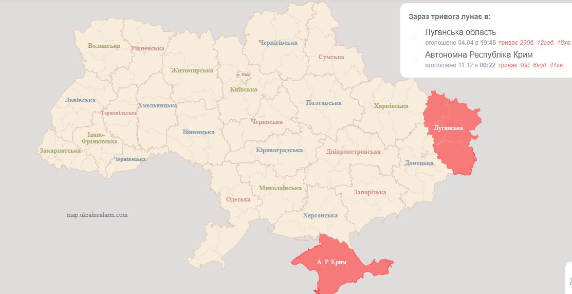 09.42 Регионы на востоке Украины в зоне воздушной тревоги.