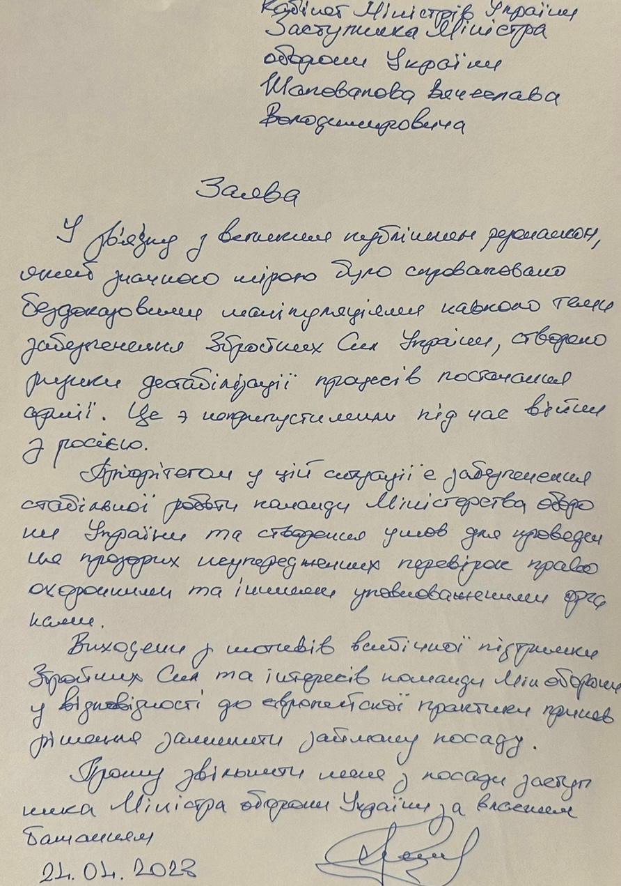 Шаповалов отвечал за тыловое обеспечение ВСУ. Он попросил уволить его, чтобы "не создавать угрозы для стабильного обеспечения ВСУ в результате кампании обвинений, связанных с закупкой услуг питания".