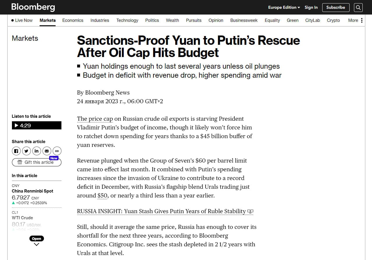 А при цене выше 60 долларов российские власти начнут даже пополнять свои резервы в юанях.