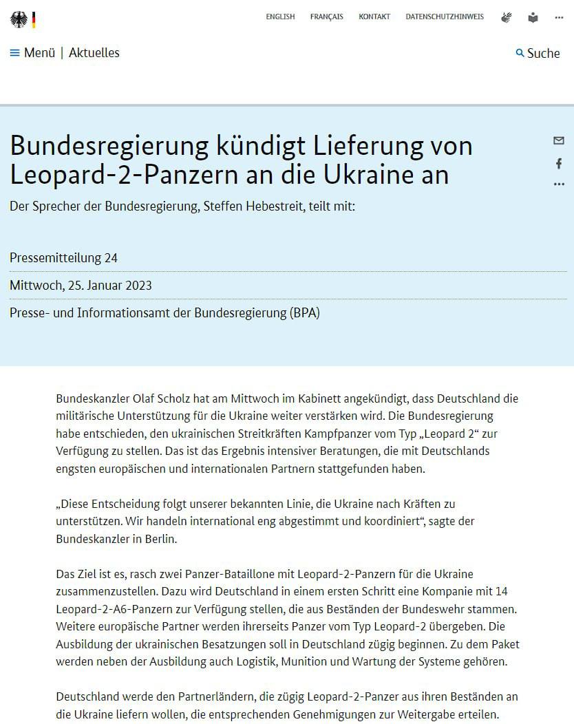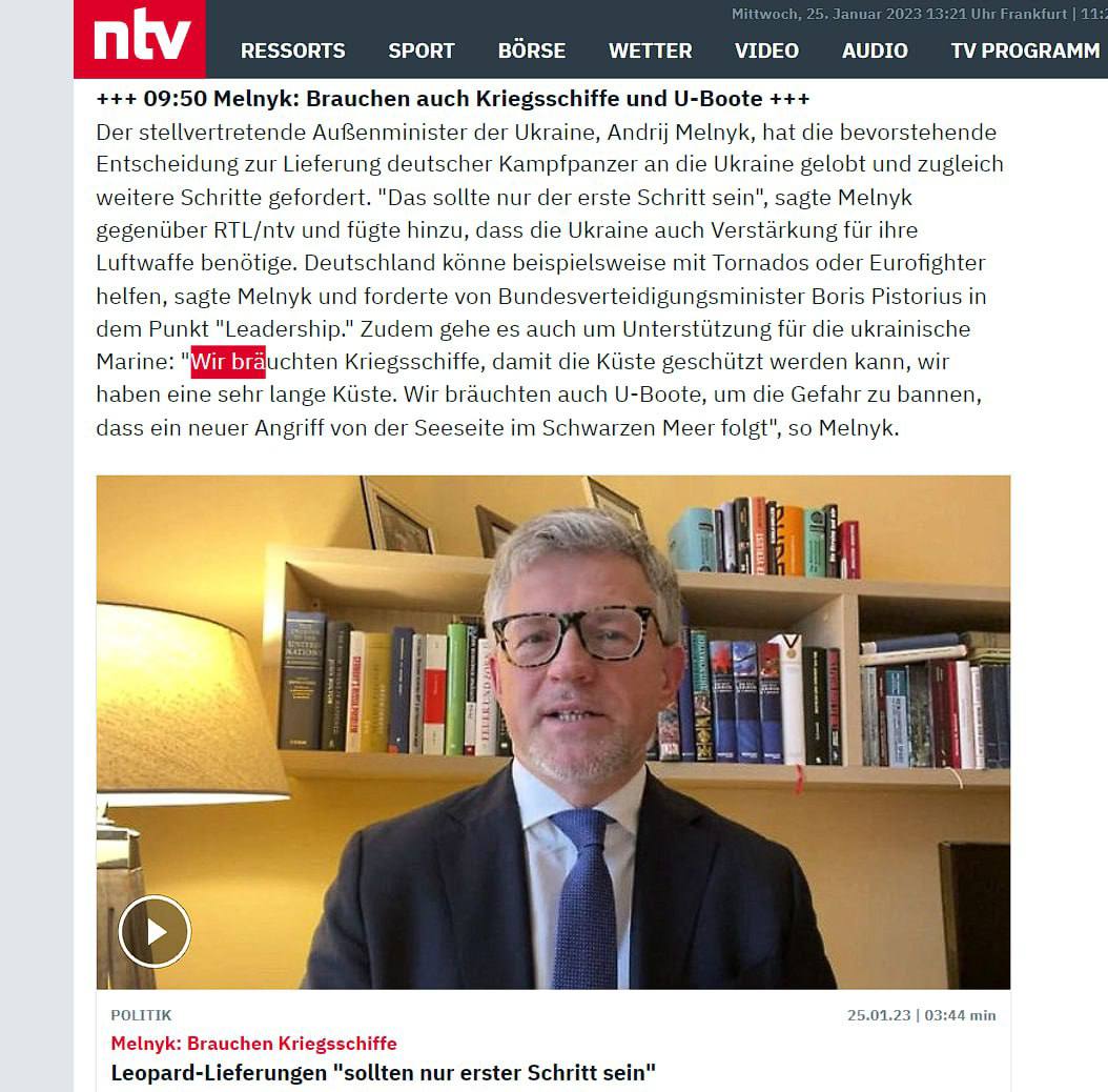 1. Заявил, что в мире появилась "танковая коалиция", что с утра он говорил о танках с канцлером Германии. Поблагодарил Берлин и Вашингтон за решения по танкам. Пообещал создать танковый "кулак свободы".