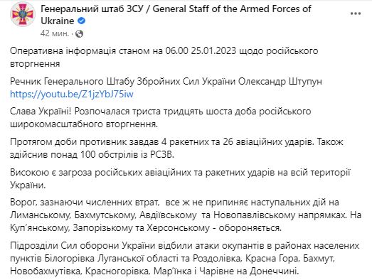 В среду, 25 января, в Украине идет уже 336-й день войны с РФ.