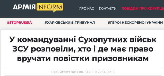 В ВСУ заявили, что по закону вручать повестки в Украине могут где угодно и не только военкомы. Это может быть руководитель учреждения, организации и предприятия, где работает призывник, руководитель ЖЭКа, ОСМД и любые другие должностные лица.