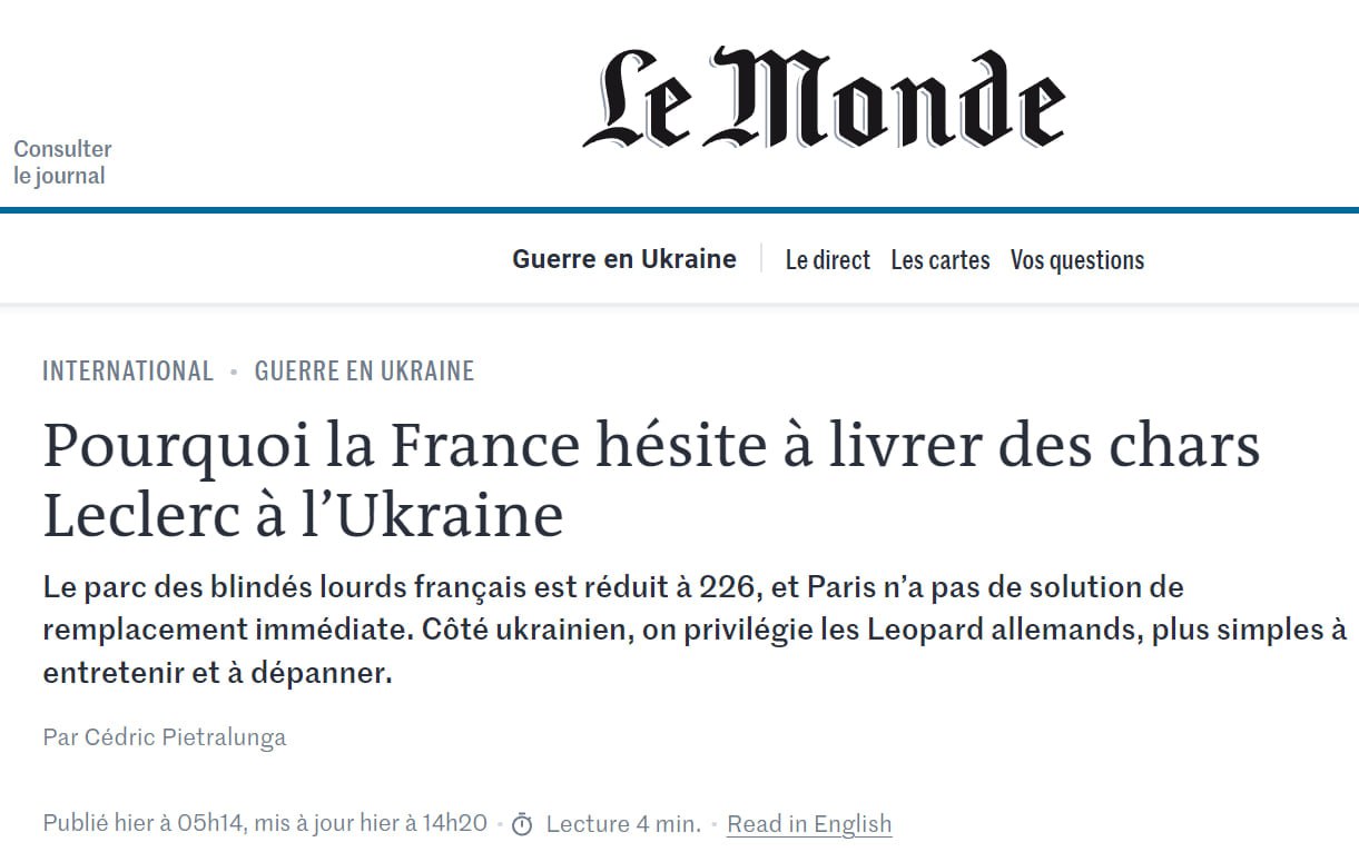 Опрошенные изданием эксперты сообщают, что учитывая возможность Франции передать только 10-20 Leclerc, такая поставка может оказаться бесполезной.
