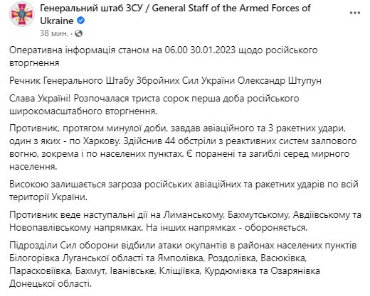 В понедельник, 30 января, в Украине идет уже 341-й день войны с РФ.