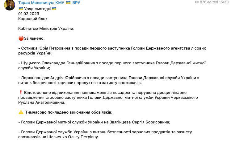 Кабмин официально заявил о смене руководства украинской таможни и принял еще ряд кадровых решений