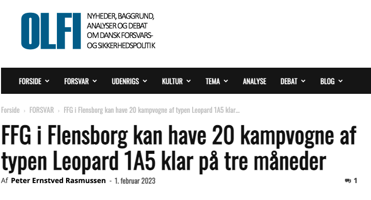 По его словам, у FFG есть 99 бывших датских танков типа Leopard 1A5, которые хранятся на складе во Фленсбурге.