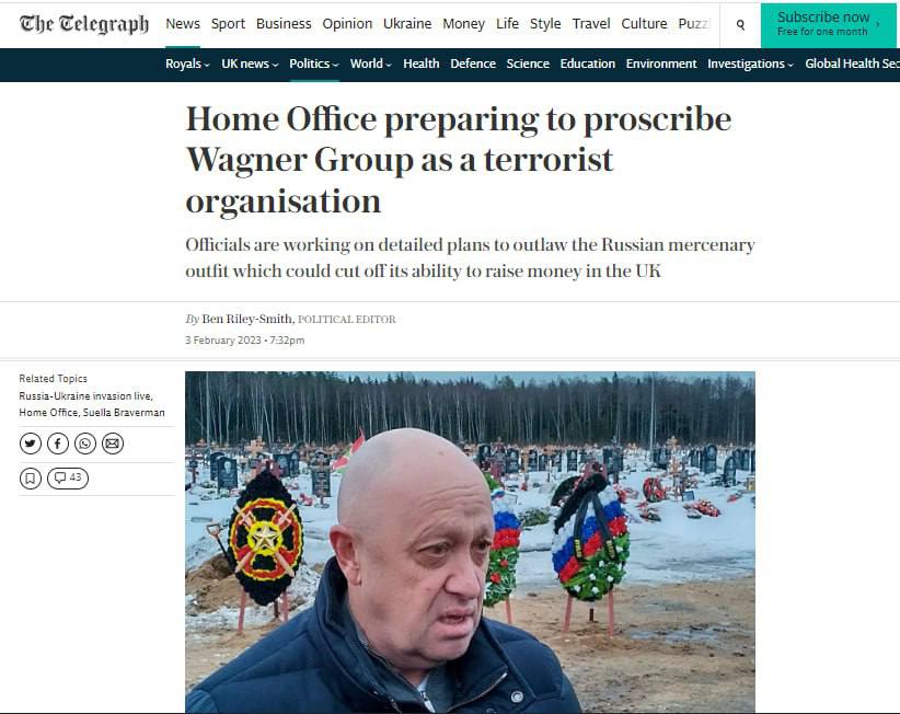 Если британские власти пойдут на этот шаг, то членство в "Вагнере" будет признано уголовным преступлением. Кроме того, будет запрещено посещение всех вагенровских акций и публичное ношение символики ЧВК.