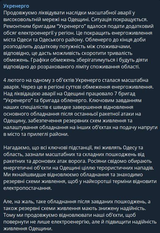 Также в "Укрэнерго" называли сроки возвращения Одесской области к плановым графикам отключения света.
