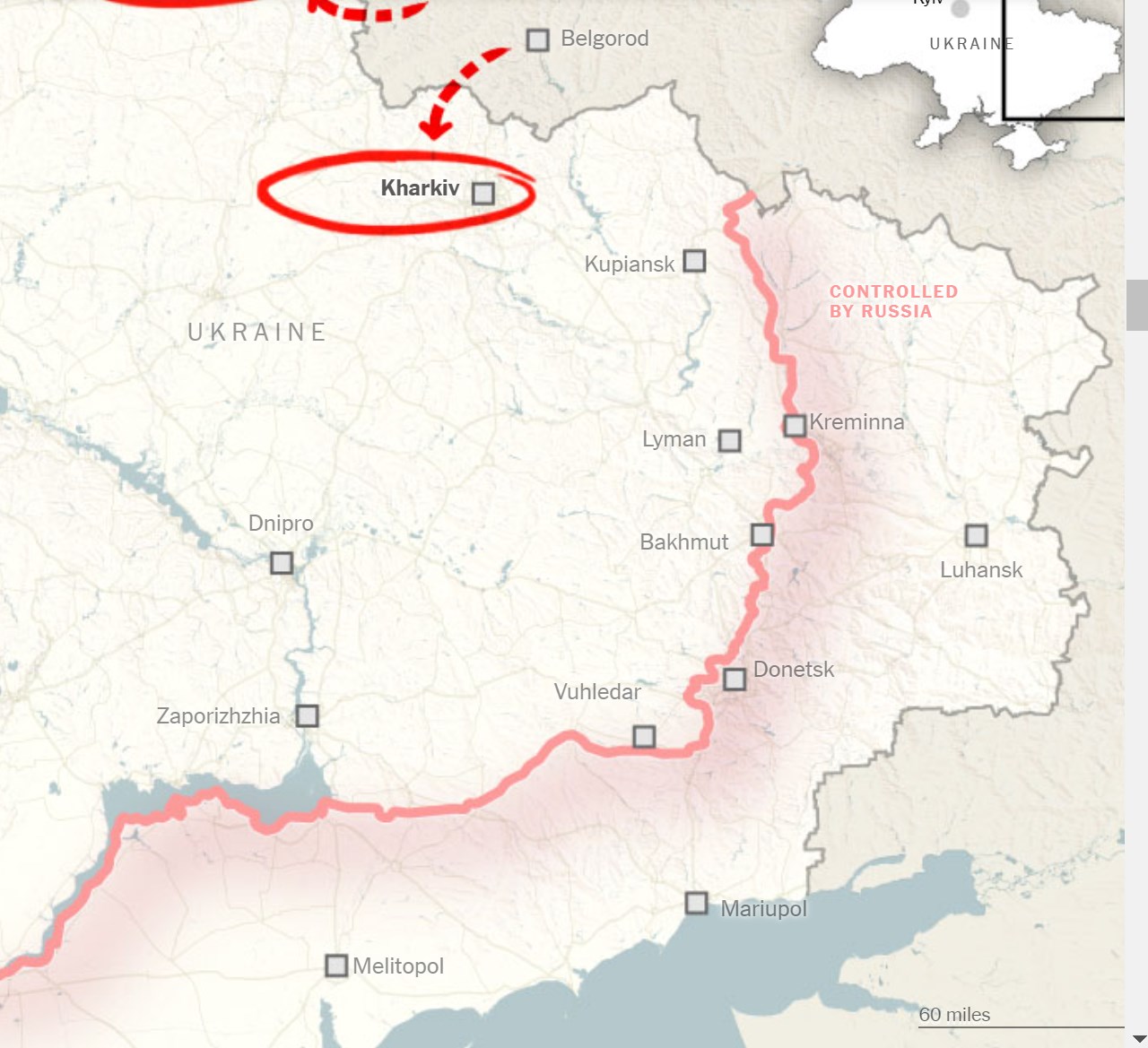 Атака с нового фронта, скорее всего, будет означать наступление с территории самой России. Поэтому украинцы внимательно следят за передвижениями вокруг приграничного города Сумы, а также за любыми попытками РФ вернуться в Харьковскую область.