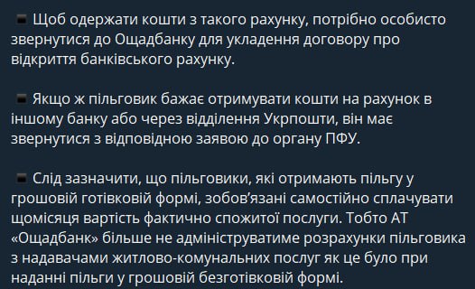 В прошлом году льготники уже получали льготы в денежном выражении, но в виде безналичных переводов на карту "Ощадбанка", откуда шли представителям услуг. Теперь же украинцы будут получать средства на счета пенсионных карт или через отделения Укрпочты.