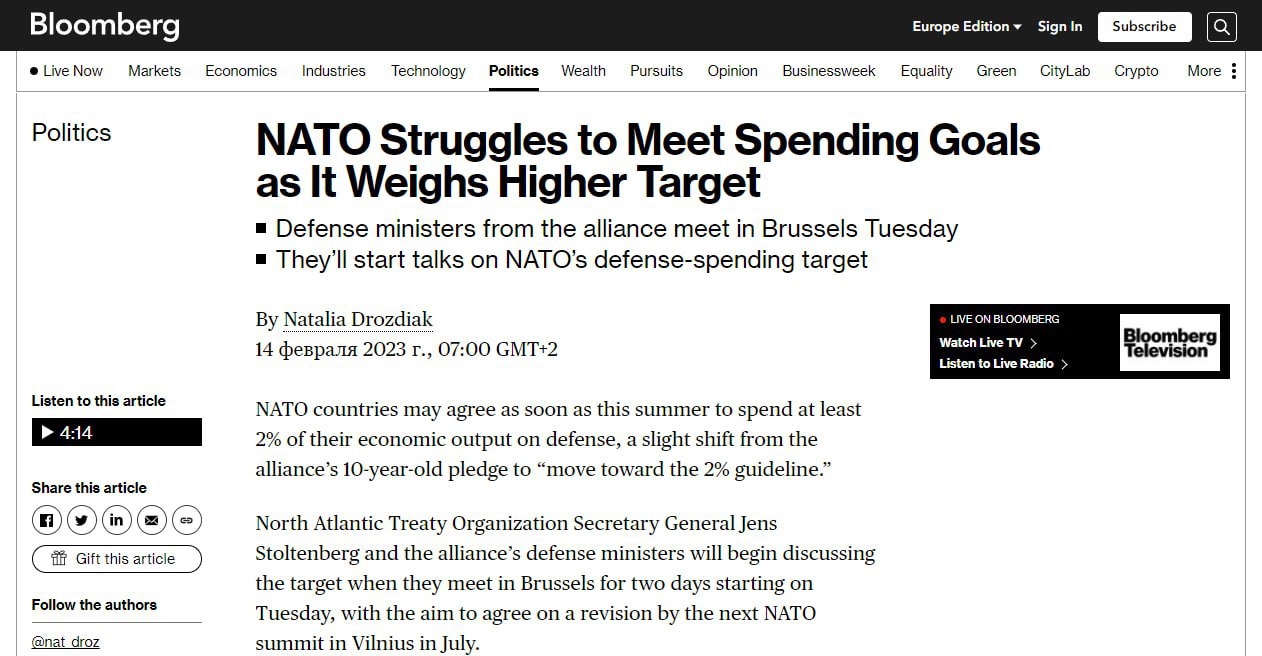 При этом Financial Times пишет, что в Киеве рассматривают получение западных боевых самолетов как долгосрочную цель, в то время как сейчас акцент делается на поставках боеприпасов.