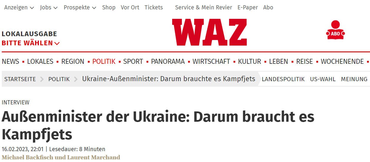 "До сих пор ни одна страна не взяла на себя обязательства по поставке истребителей. Но некоторые правительства, например Великобритании, объявили об обучении украинских пилотов на западных истребителях, скоро это сделают и другие", - сказал Кулеба в интервью изданиям немецкой медиагруппы Funke.