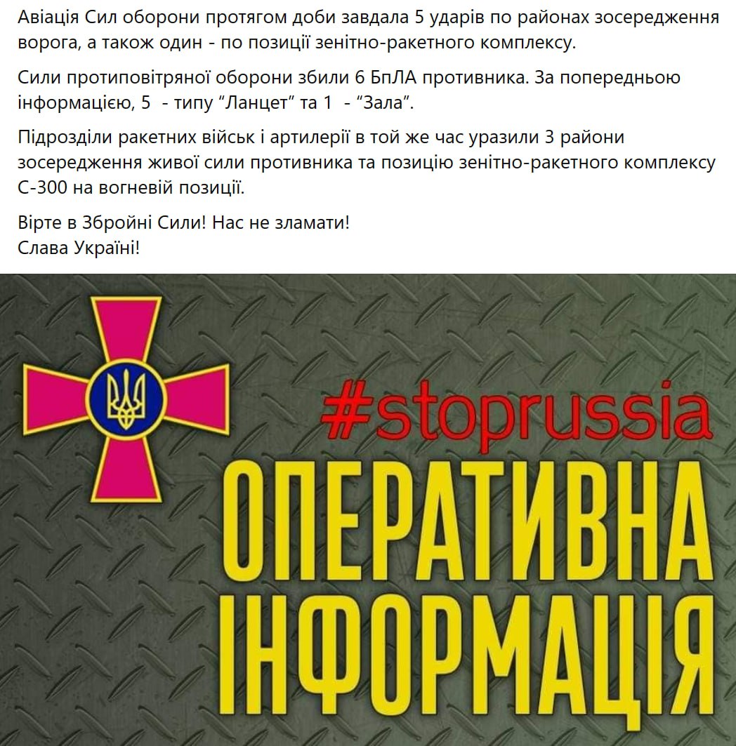 1. В течение суток противник нанес 10 ракетных и 29 авиационных ударов (Украина нанесла пять авиаударов). Угроза дальнейших ракетных ударов остается очень высокой по всей территории Украины.