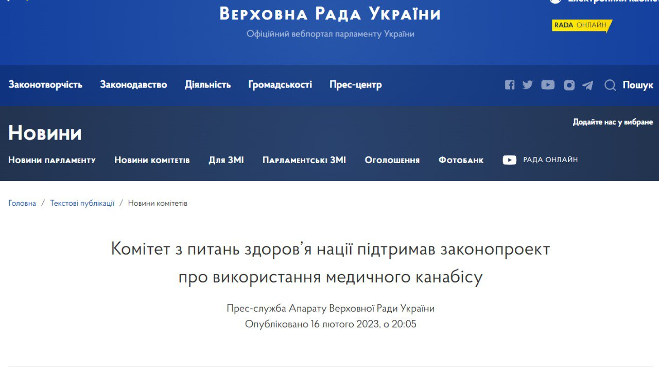 Комитет Верховной Рады по вопросам здоровья нации рекомендовал парламенту принять закон о легализации использования каннабиса в медицинских целях.