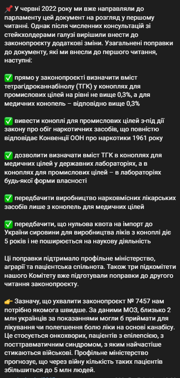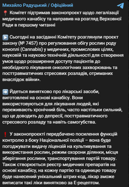 "Речь идет исключительно о лекарственных средствах, изготовленных на основе каннабиса. Они используются для лечения людей, которые переживают хроническую боль, часто настолько сильную, что это доводит до депрессии, посттравматического стрессового расстройства и даже самоубийства", – написал он.