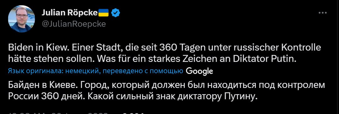 11:34 Журналист Bild Юлиан Репке также пишет, что Байден приехал в Киев.