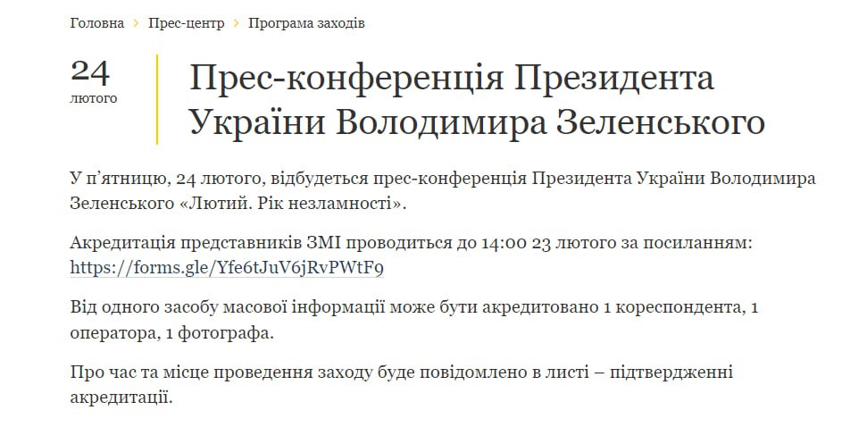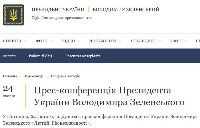 10:57 Владимир Зеленский завтра проведет пресс-конференцию, посвященную году войны.