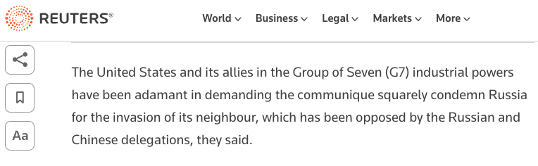 По оценке издания, из-за этого саммит министров финансов и глав центральных банков G20 завершится без совместного коммюнике.
