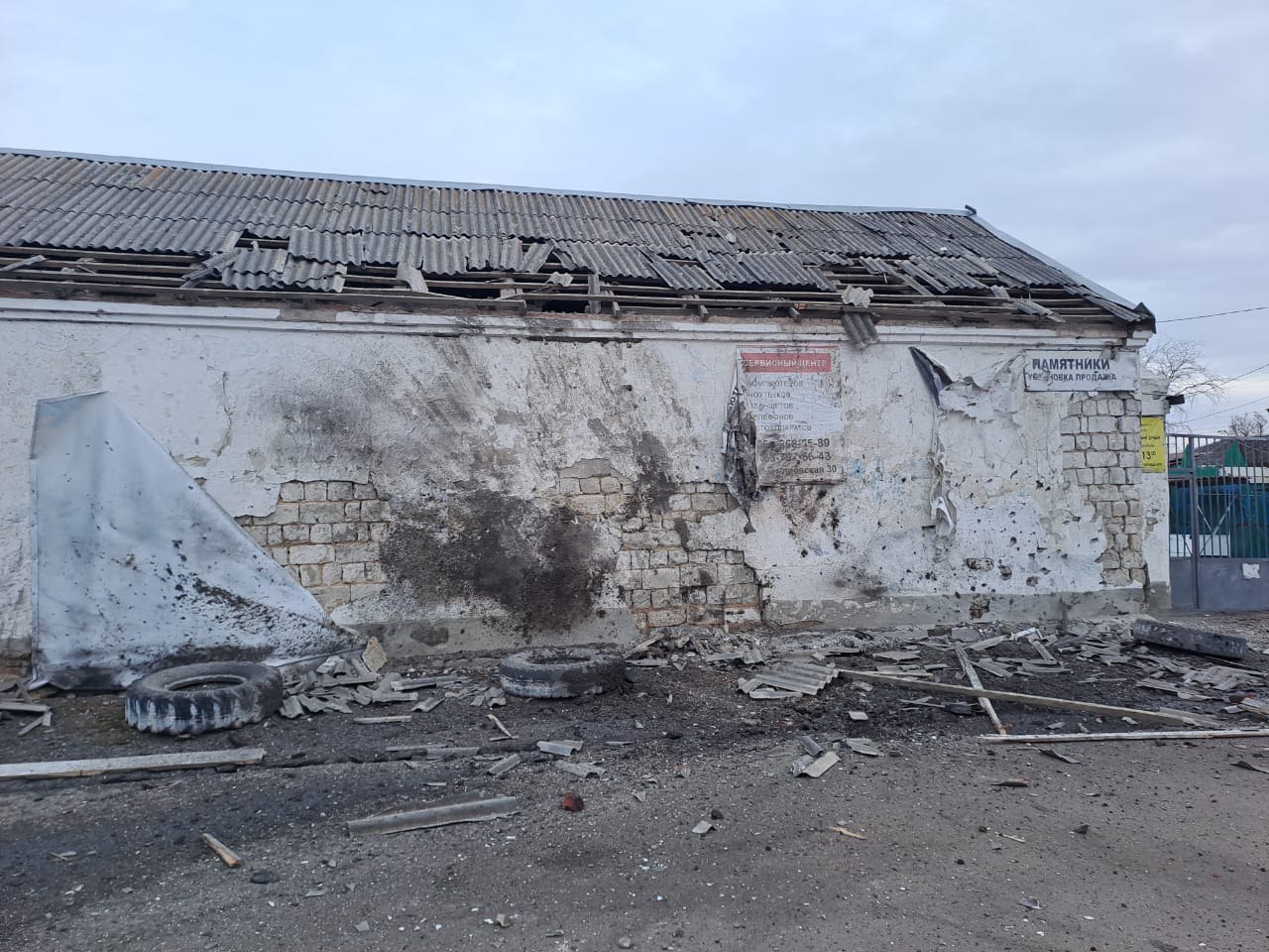 Также повреждены школа, многоэтажки, частный дом, гаражи и автомобили.