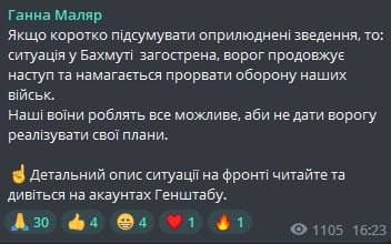 2. Противник не оставляет попыток оцепить Бахмут. Основные усилия сосредоточены на ведении наступательных действий на Купянском, Лиманском, Бахмутском, Авдеевском и Шахтерском направлениях. За прошедшие сутки наши воины отразили на них 102 атаки.