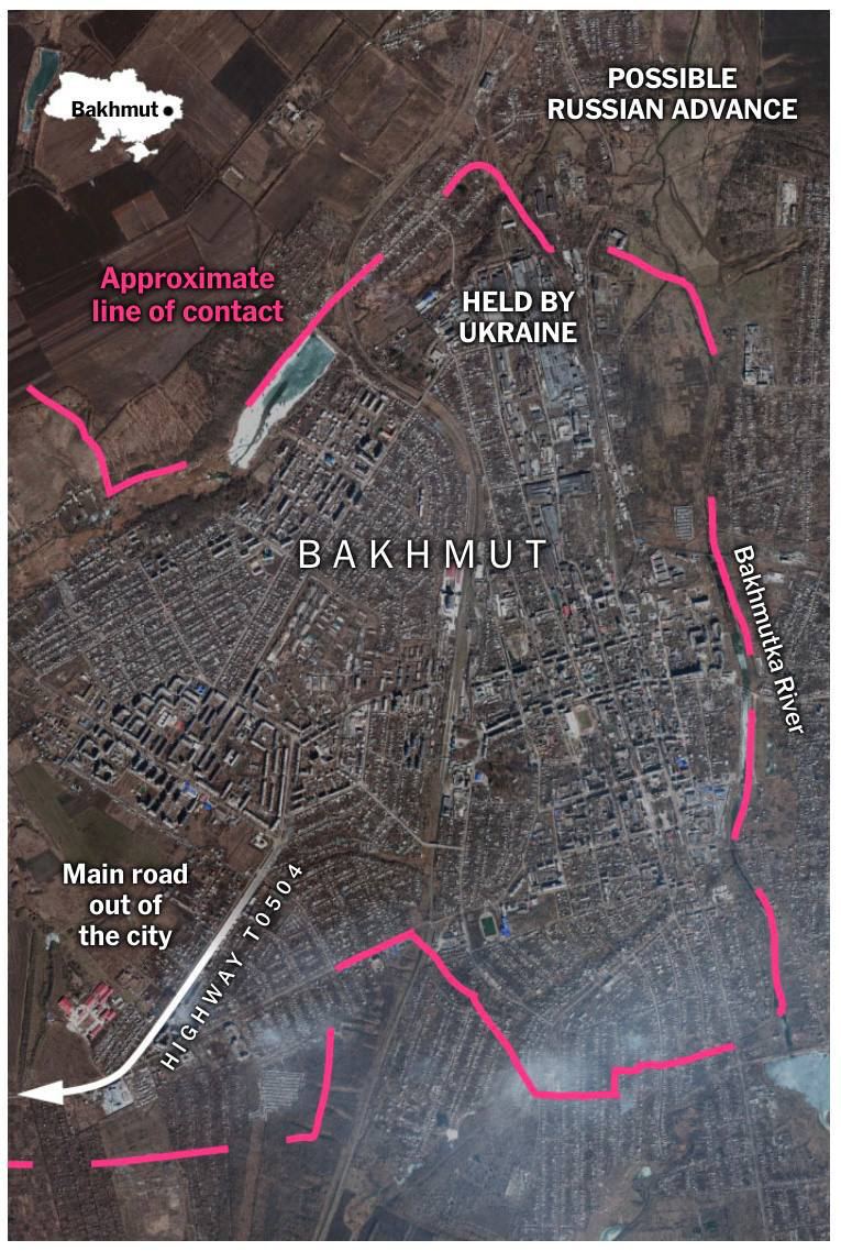 Также "российские войска добились незначительных успехов на юге Бахмута вдоль трассы T0513 (в сторону Константиновки)".