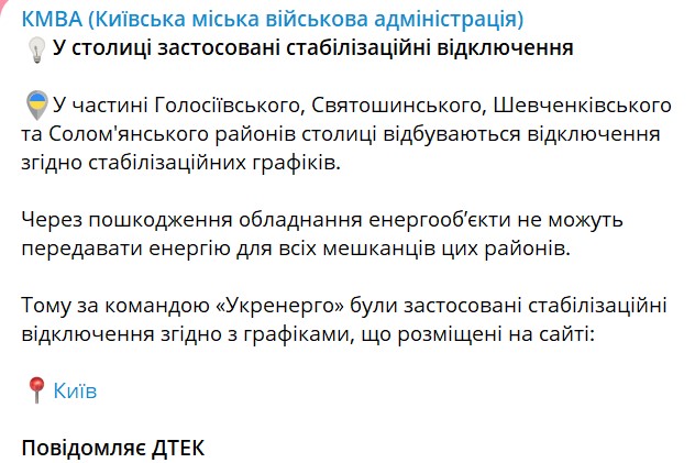 Вчера вечером, как сообщалось, в Киеве и области ДТЭК отменил плановые отключения электричества. Однако, как видим, сегодня они снова применяются.