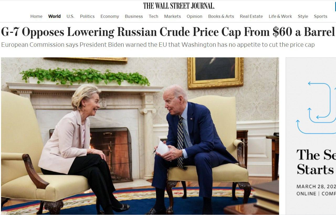 "Позиция "Большой семерки" может спровоцировать новую напряженность в ЕС по поводу схемы ограничения цен. Власти Польши, Эстонии и Литвы накануне призывали снизить потолок цен на нефть из РФ до 51,45 долларов, но этого сделано не будет", – пишет издание.
