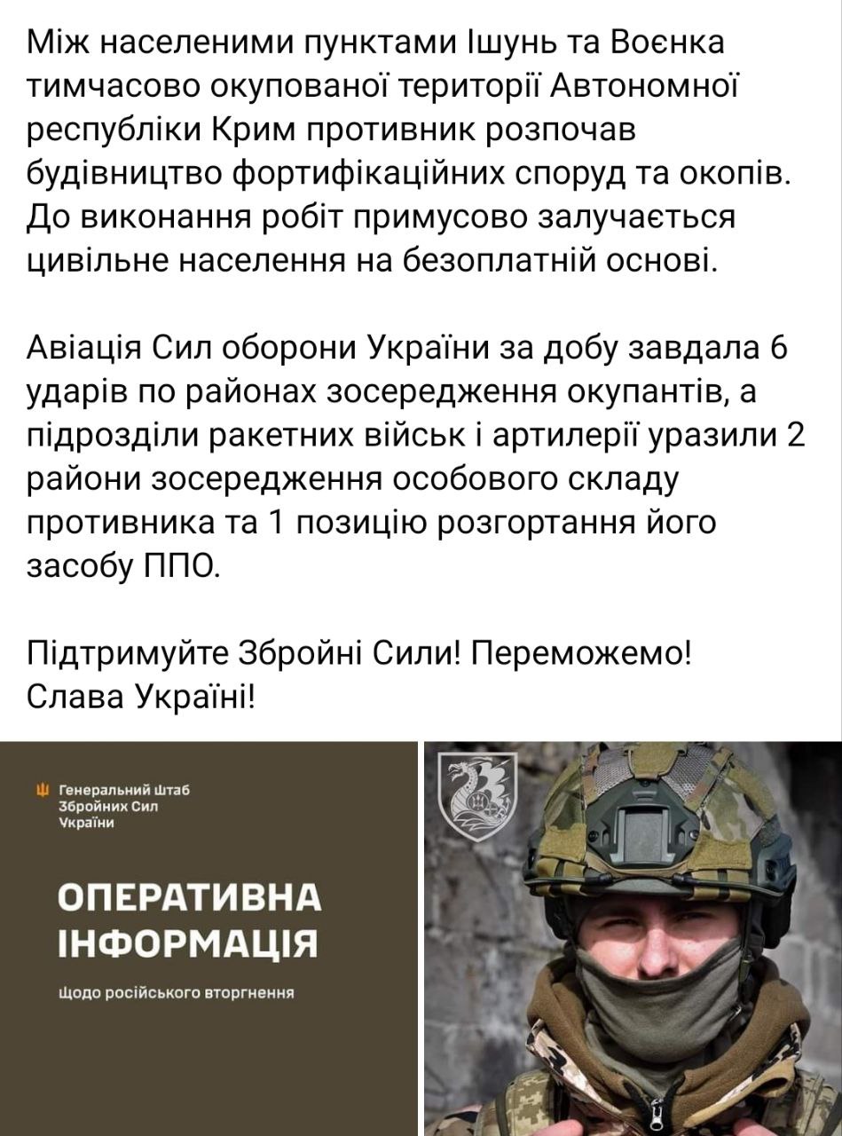 Также сообщается о строительстве новых укреплений в Крыму - между сёлами Ишунь и Военка под Красноперекопском (при въезде на полуостров).