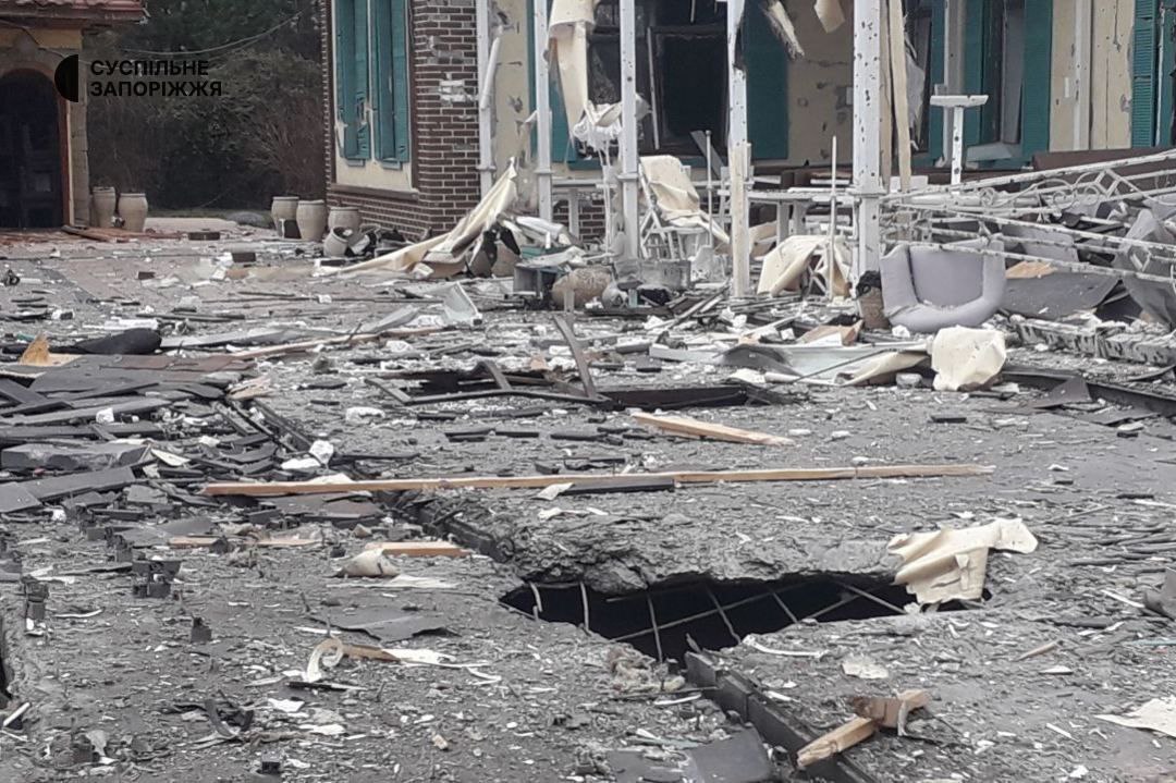 06.36 Российская ракета разрушила заведение общепита в Запорожье. От взрывной волны в окрестных домах вылетели стекла, повреждены крыши и фасады.