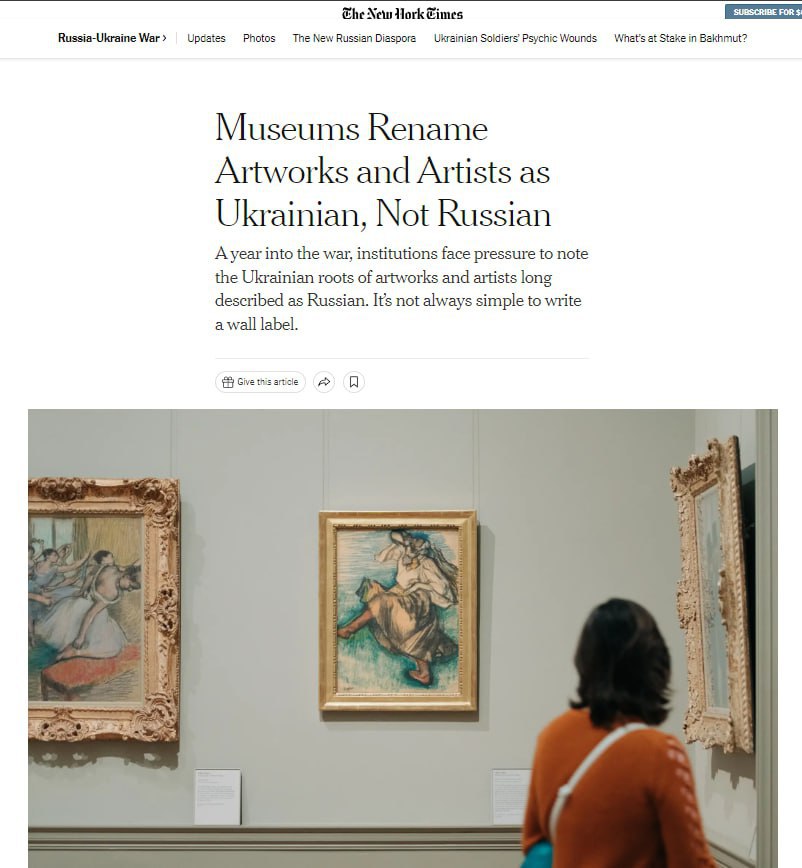 Корректировки отражают движение, которое в настоящее время происходит в музеях по всему миру, вызванное вторжением России в Украину. Многие пересматривают — и, во все большем числе случаев, переименовывают — произведения искусства и художников из бывшей Российской империи и бывшего Советского Союза, чтобы отразить их украинское происхождение, пишет американское издание.