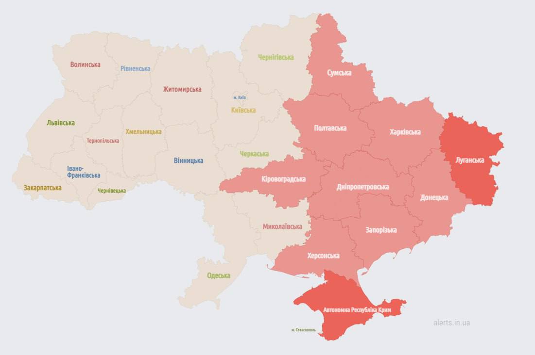 14.48 В восточной части Украины - воздушная тревога.