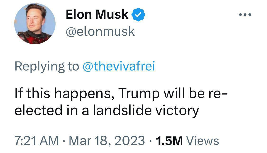"Если это случится, Трамп будет переизбран с подавляющим преимуществом", - пишет Маск.