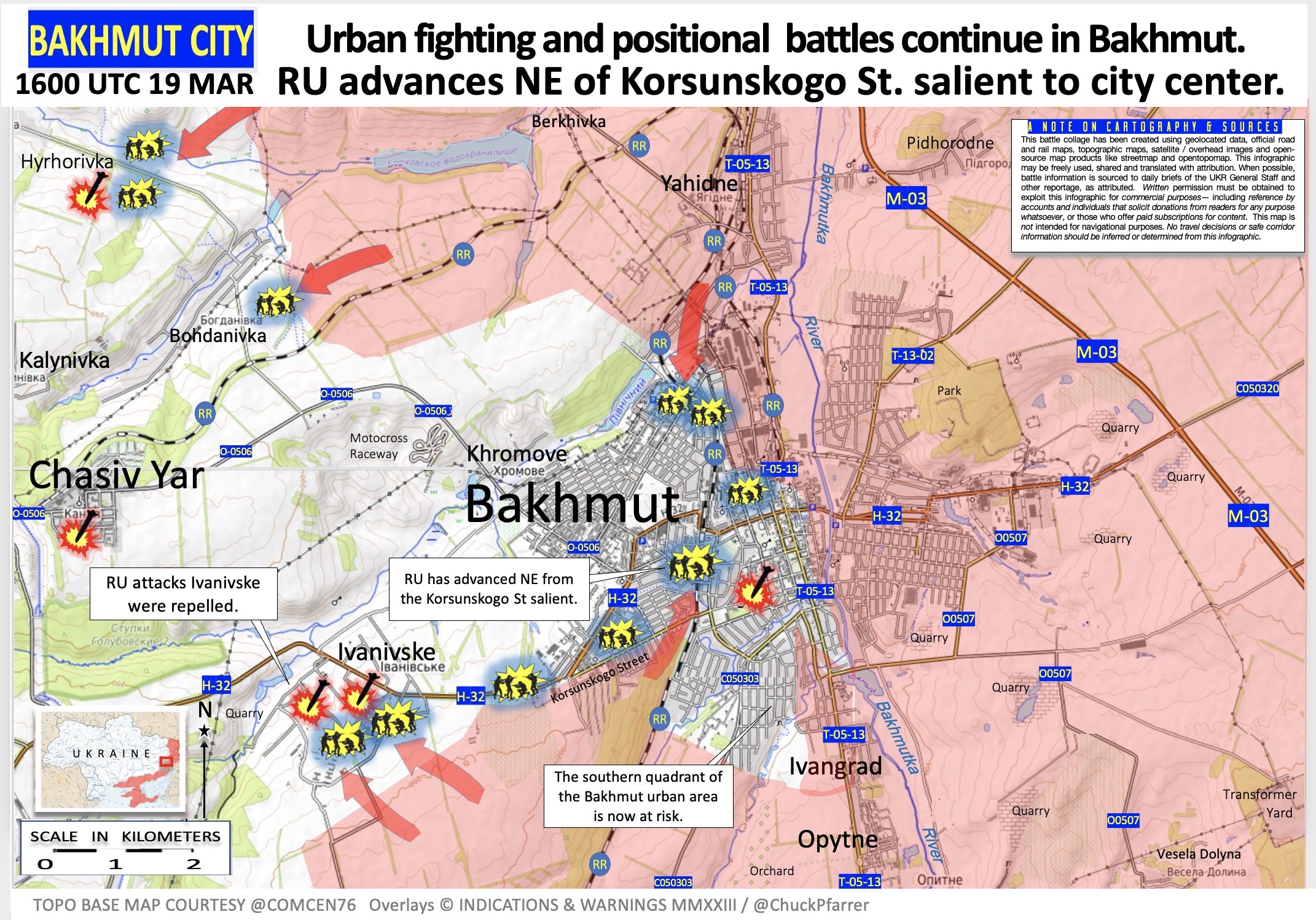 Другой западный обозреватель, американский военный аналитик Чак Пфаррер, пишет, что россияне "продвинулись в северо-восточном направлении от выступа улицы Корсунского и в настоящее время находятся вблизи центра города".