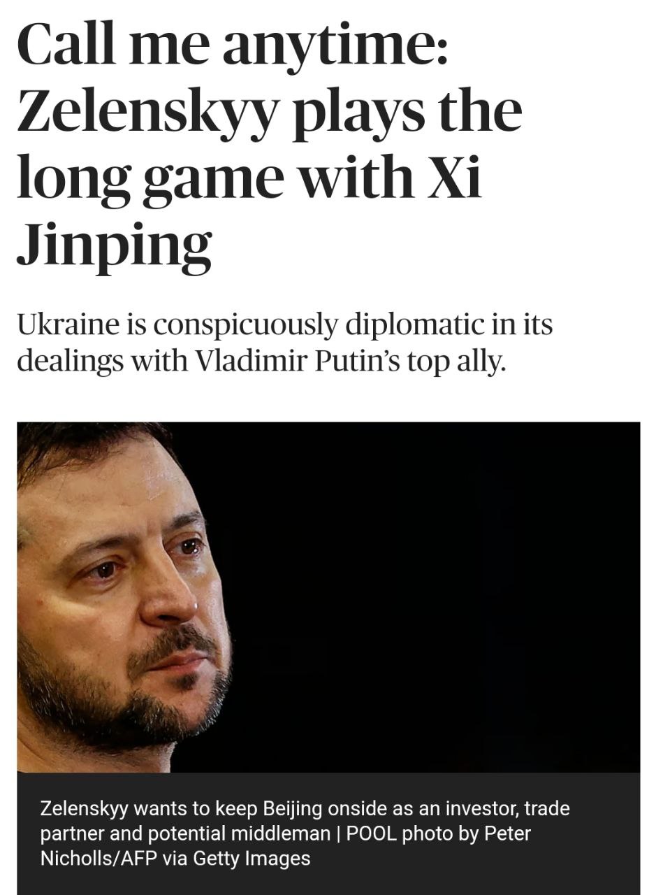 "Президент Зеленский рад выступить с резкой критикой в адрес стран, включая Венгрию и Германию, за то, что они слишком сблизились с русскими. Но он ведет долгую дипломатическую игру с союзником Москвы №1: председателем Китая Си Цзиньпином", - считает издание.