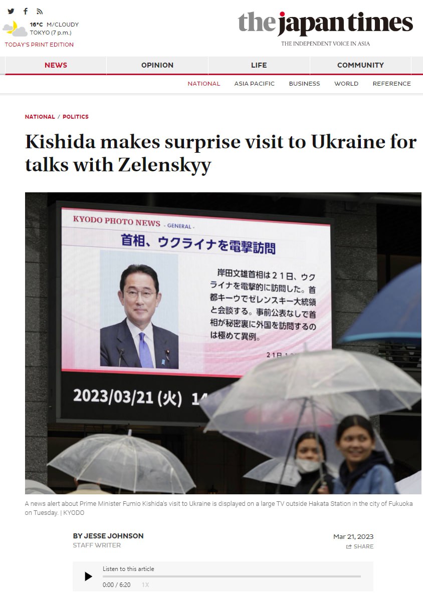 07:56 В Украине сегодня будет с неожиданным визитом японский премьер Фумио Кисида.