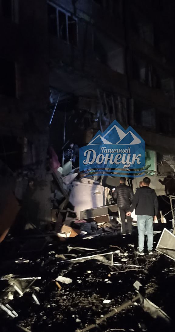22:41 Фото последствий прилета в Киевском районе Донецка.