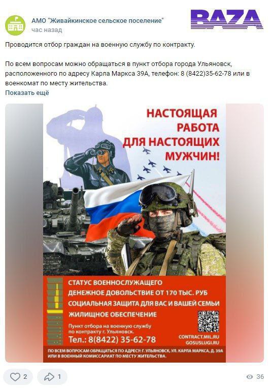 Повсеместная реклама контрактной службы. По данным российских СМИ, местным органам власти и бюджетным организациям спущено указание — повальное промотирование контракта с ВС РФ.