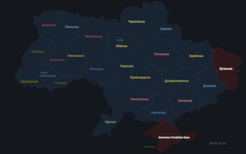 11.25 Воздушная тревога объявлена в восточных областях Украины.