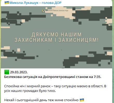 07.35 В Днепропетровской ночи ночь прошла без обстрелов, сообщают областные власти.