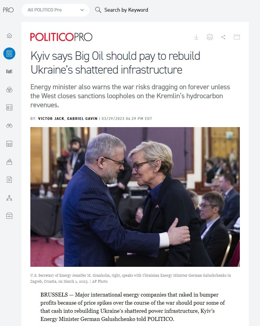 "Многие энергетические компании получают огромную сверхприбыль из-за войны. По нашим оценкам, это более чем $200 млрд. Они получают эти деньги из-за войны, потому что мы воюем. Я думаю, было бы справедливо разделить эти деньги с Украиной, чтобы помочь нам восстановить энергетическую инфраструктуру", - сказал Галущенко в комментарии Politico.