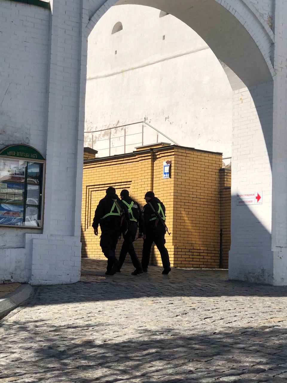 13.05 В Киево-Печерской Лавре заметили полицейских, вооруженных автоматами. Фото с ними публикует пресс-служба УПЦ.