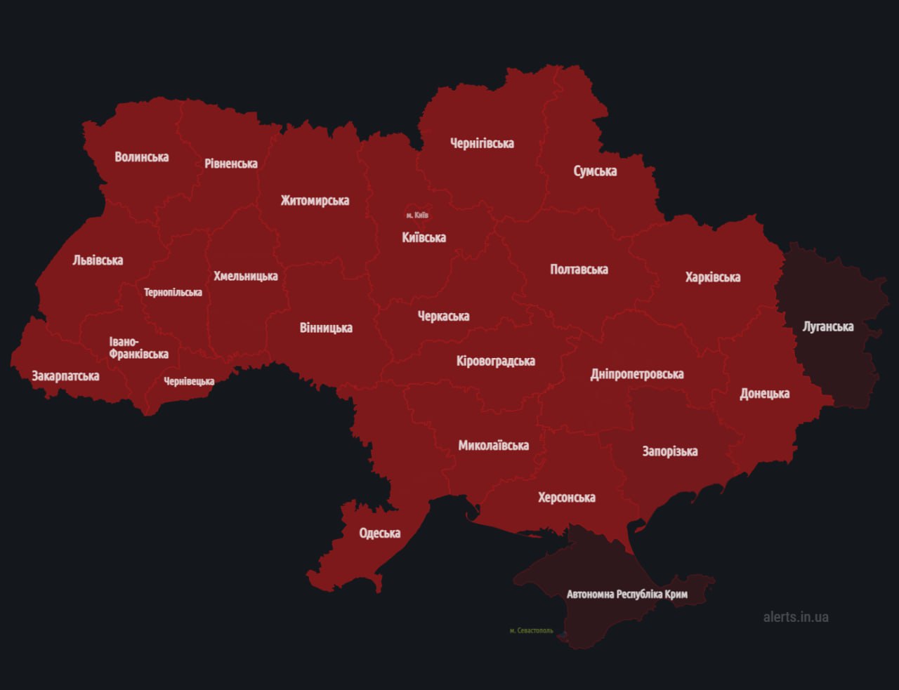 На данный момент воздушная тревога объявлена в Черниговской и Сумской областях, оттуда сообщают об угрозе беспилотников.