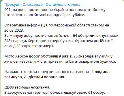 РФ обстреляла Херсонскую область 64 раза за сутки, есть погибшие и раненые