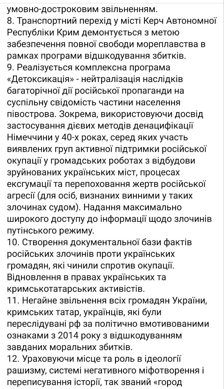 Остальные пункты касаются привлечения к ответственности в украинских судах виновных в коллаборационизме или других преступлениях. А также освобождения политзаключенных.