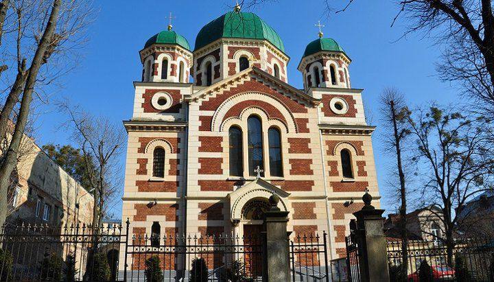 Это расположенный в центре города храм 1901 года постройки. Википедия пишет, что это единственный кафедральный собор УПЦ во Львове.