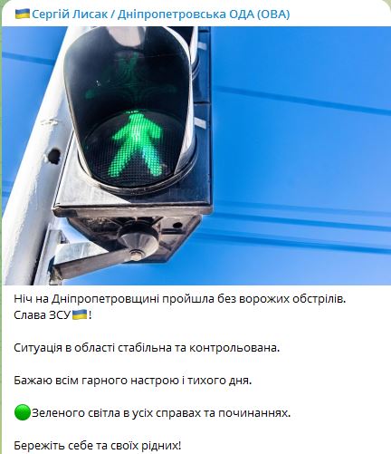07.30 В Днепропетровской области ночь прошла без обстрелов.