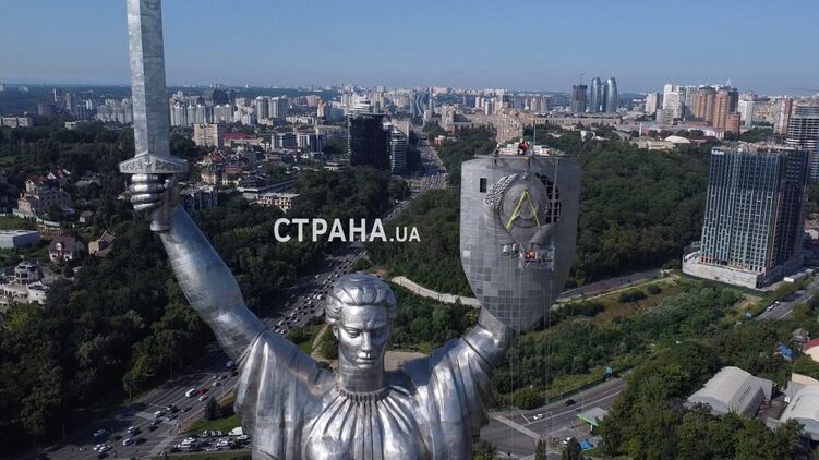 В Киеве снимают советские символы с монумента "Родина-мать". Фото: "Страна"