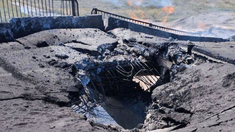 Появились фото сильных повреждений Чонгарского моста после ракетной атаки