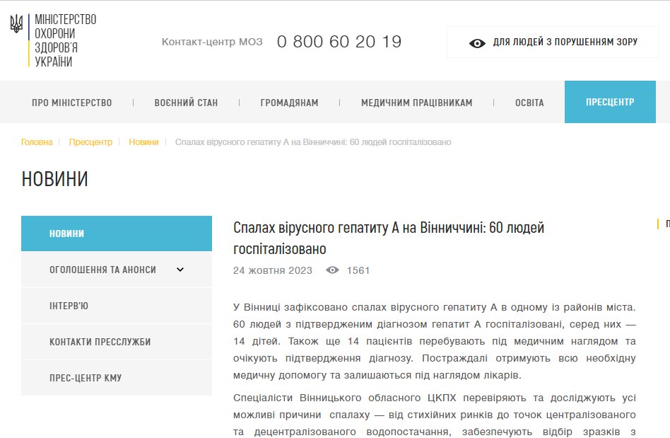 В Виннице вспышка гепатита А, 60 человек уже в больнице